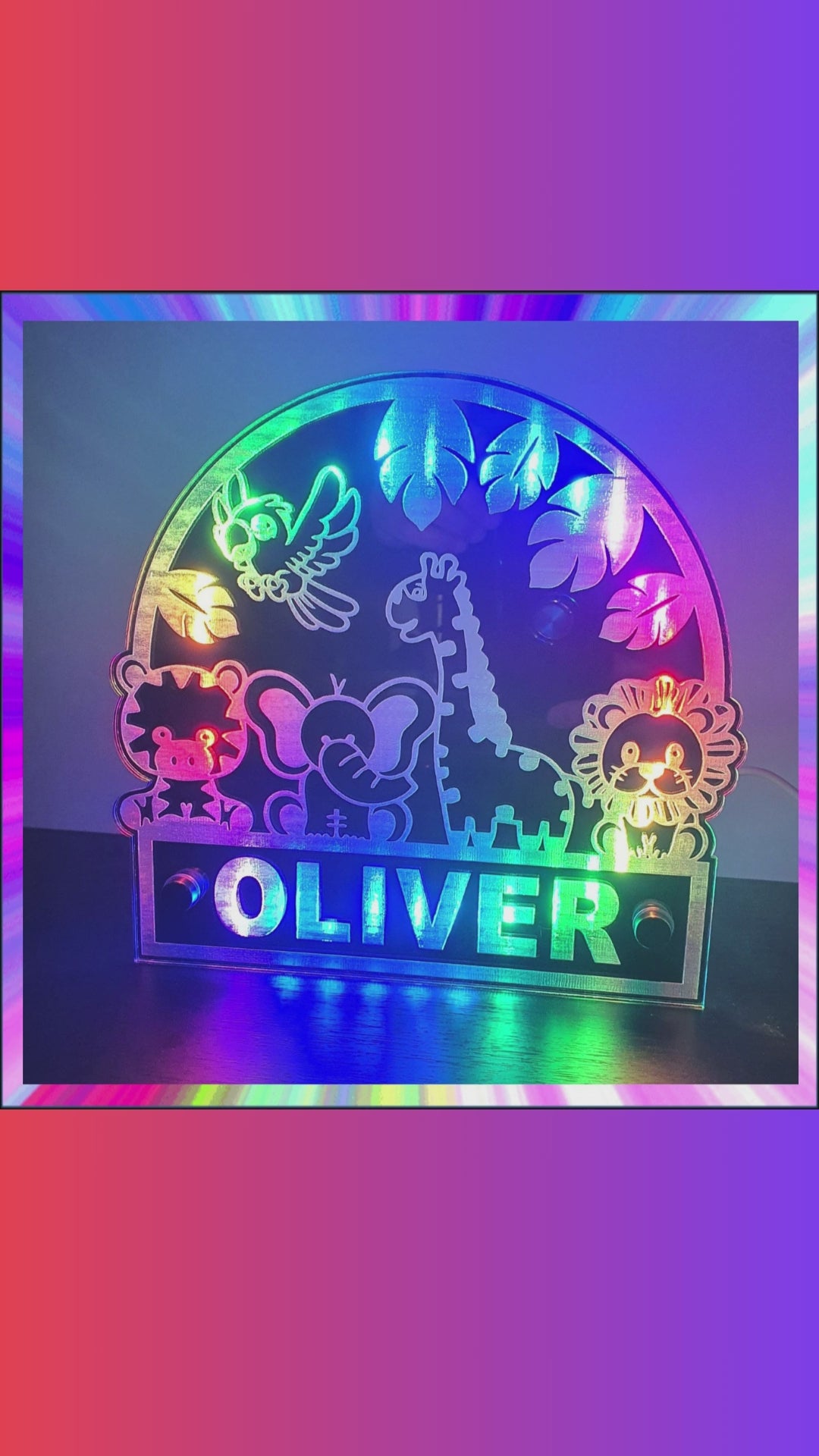 Animals Personalised L.E.D Mirror with 366 Light Modes and 12 Static Light Colours and remote