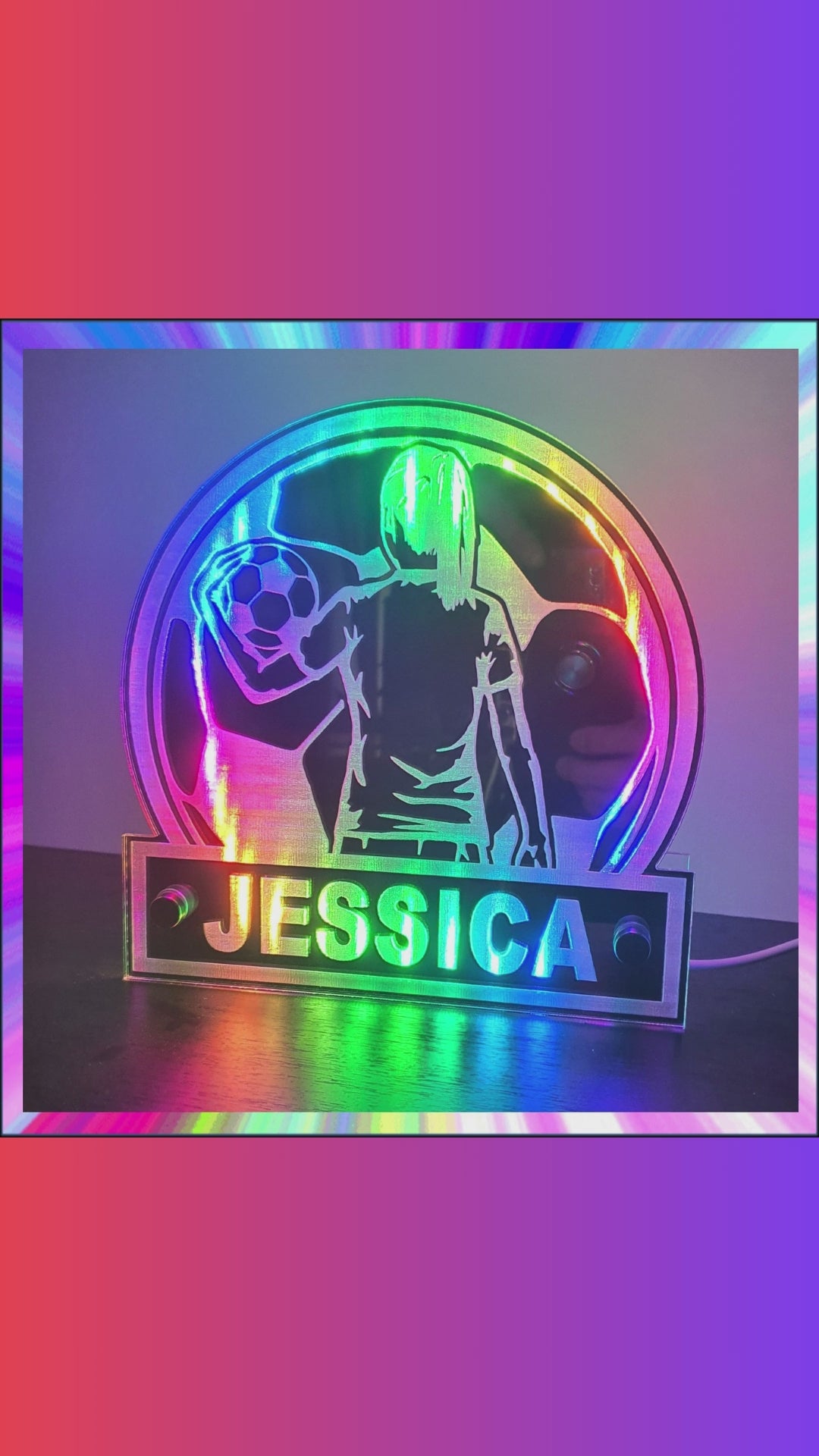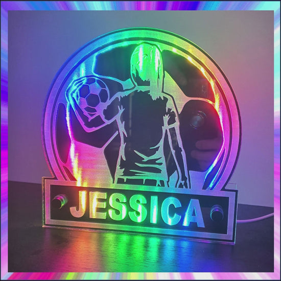 Girl Footballer Personalised L.E.D Mirror with 366 Light Modes and 12 Static Light Colours and remote